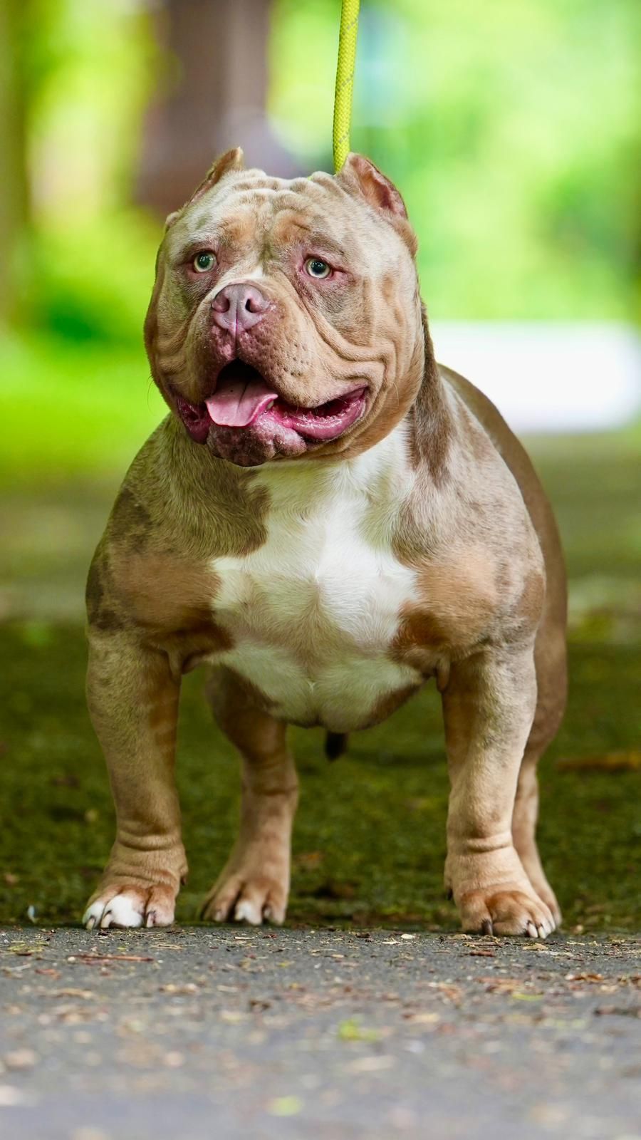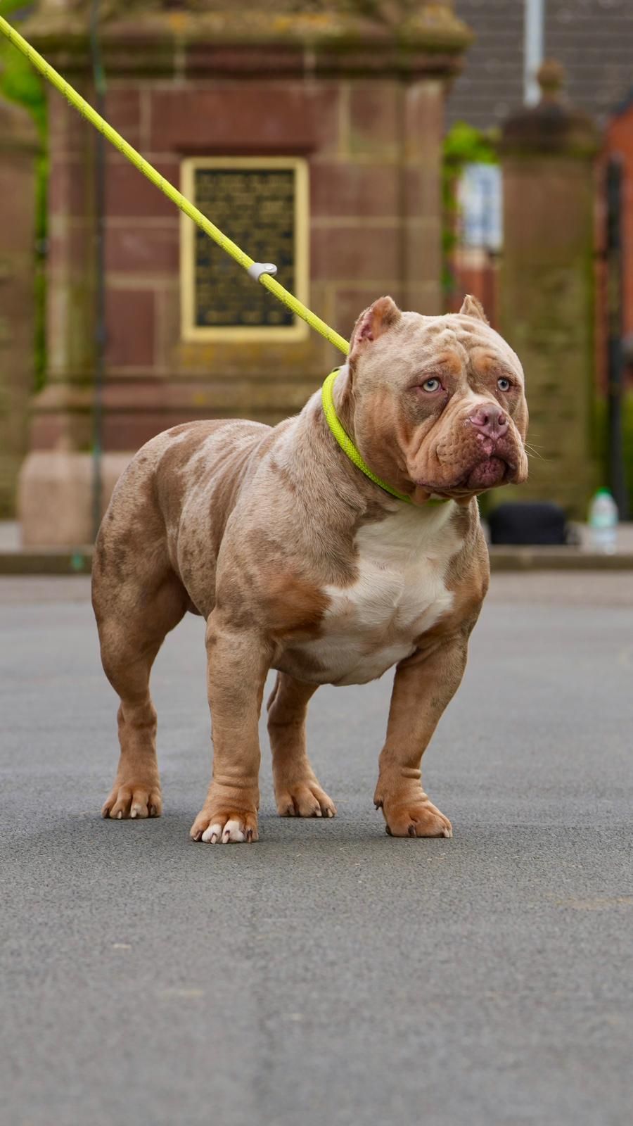 If you are looking for a pocket BULLY stud here is my boy cookie he is currently around one and a half years old sitting at about 35 to 40 KG is he has got a couple of litters on the ground and soon to be on the ground so it is proven the boy is a lilac triangle pair with the right bitch she will get rainbow leoters. Full abkc, 22.5 head